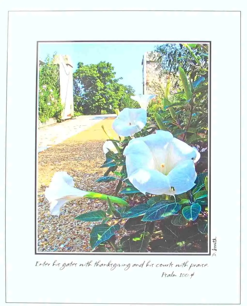 Measures 81/2″ x 11″.”Enter his gates with thanksgiving and his courts with praise.”  Psalm 100:4