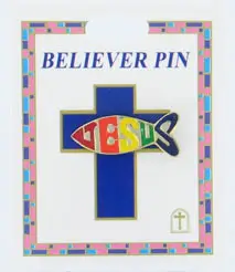 What better way to honor your belief in Christ! Wear it yourself or give as a keepsake gift. This colorful pin is attractively designed, featuring the word “JESUS” in full-color across the fish. Each pin has a clutch back.