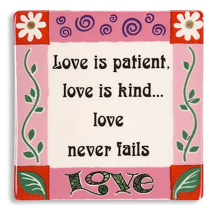 “Love Is Patient, Love Is Kind… Love Never Fails” — Dolomite — 3″ SQ