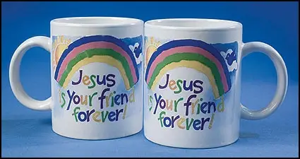 10oz white ceramic mug – With colorful rainbow and “Jesus is Your Friend Forever”
